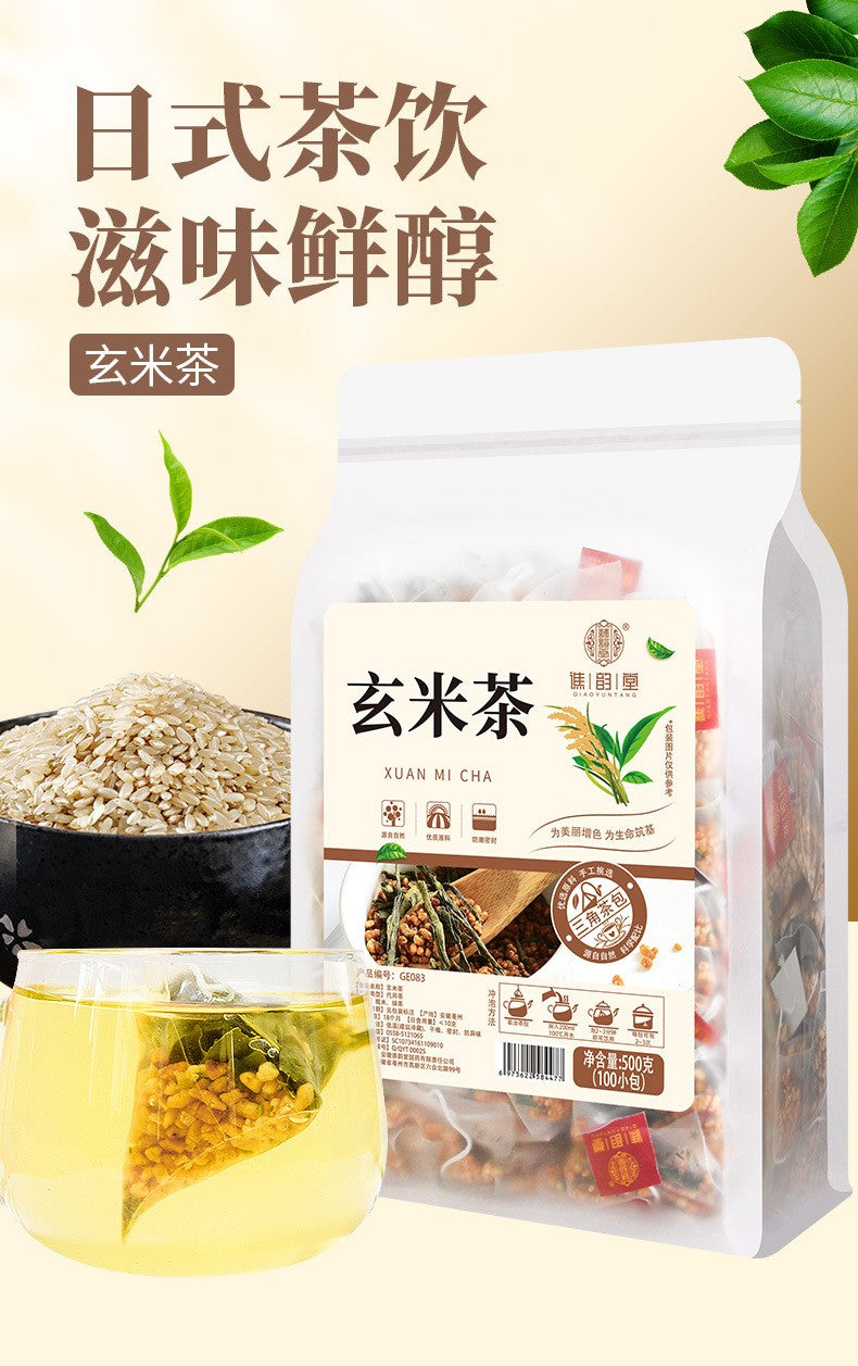 Genmaicha (Brown Rice Tea) — A Japanese classic combining premium green tea with carefully roasted brown rice. Rich toasty aroma with refreshing tea flavor, naturally low in caffeine. Packed with dietary fiber and vitamins — a perfect healthy drink for work and home.