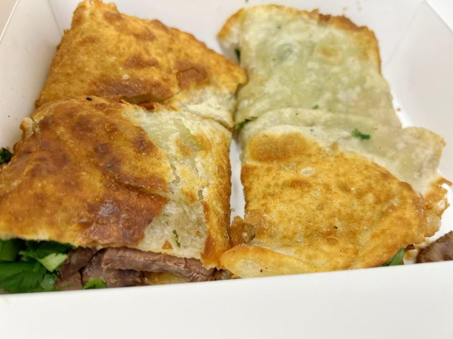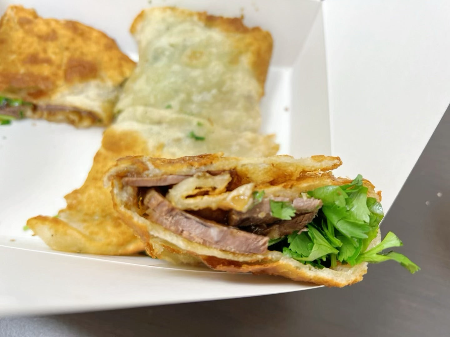 饼皮微酥带韧,牛肉炖得软而不柴,